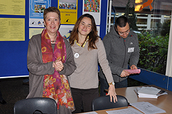 Caprice Larrard (10b). Eigentlich wollte die Klasse den ganzen Tag lang den Stand des Gesundheitsamtes vor dem Rathaus betreuen, Prospekte verteilen und Jugendliche und Erwachsenen ansprechen und auf die Aktion aufmerksam machen. Das konnte aufgrund des kurzen Schuljahres nicht genehmigt werden, da in den Kernfächern möglichst keine Stunde ausfallen soll. „Nach der 4. Stunde kann es los gehen. Wir müssen uns beeilen, um möglichst viele