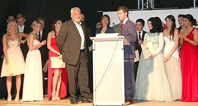 Daniel Nöske hielt die Ansprache für die Abiturienten und hob humorvoll und gespickt mit vielen "Insidern" die außerunterrichtlichen Erfolge der Schüler hervor. Sein Ausblick in die Zukunft enthielt jedoch einen ernsten Unterton: Mit "Wer schmiert mir jetzt meine Brote?" brachte er eine gewisse Unsicherheit zum Ausdruck, was die Zukunft so bringen möge. Wird die Hoffnung auf einen Studienplatz im gewählten Fach erfüllt? Wird die Ausbildung so sein, wie ich sie mir vorgestellt haben?